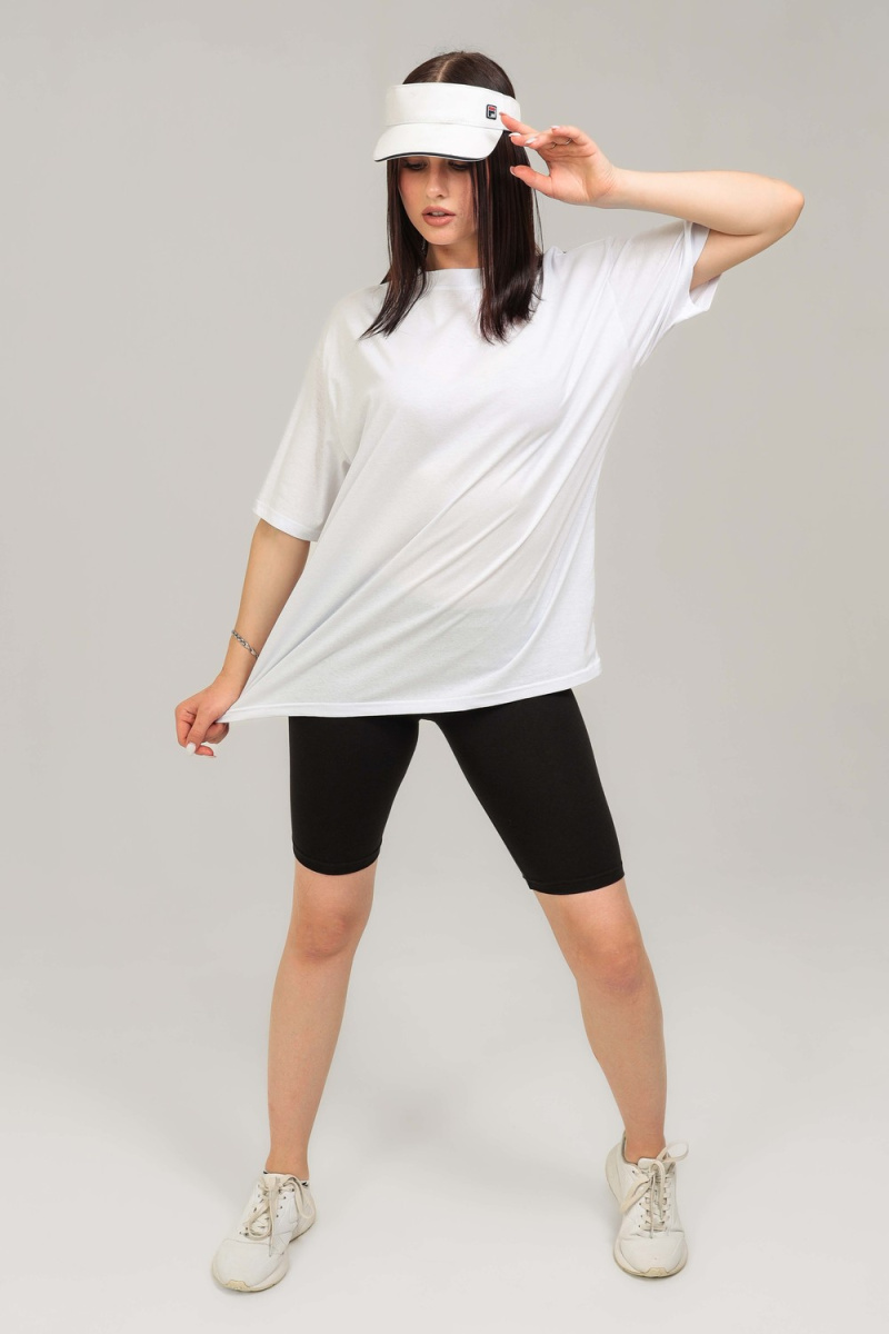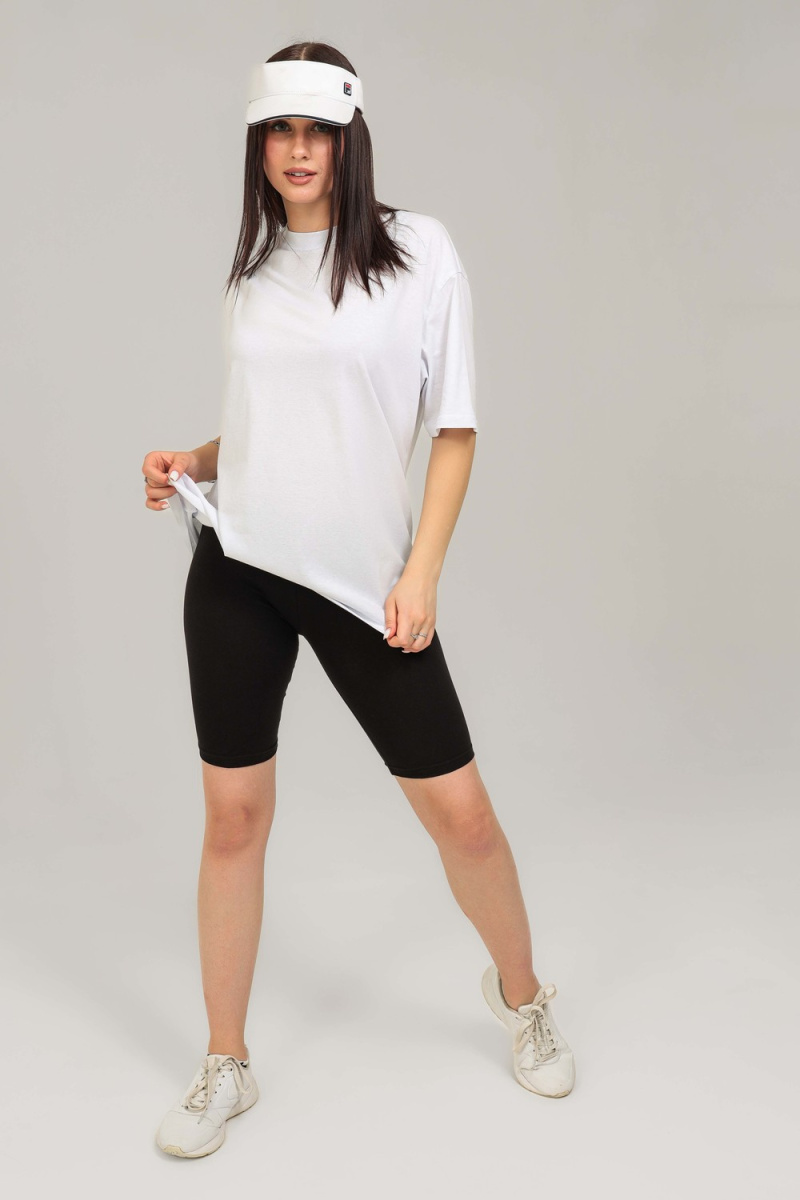Костюм для спорта, дома и отдыха. Состоит из объёмной длинной футболки - оверсайз с широкими рукавами и удлинённых велосипедок. Велосипедки из натурального хлопка с лайкрой на широкой резинке, не сдавливают, удобно прилегают. Длина рукава указана от основания шеи. В измерениях велосипедок указаны стандартные размеры фигуры. До этих значений велосипедки растягиваются без проблем. В измерении обхвата талии указана длина резинки. Продуманный крой костюма позволяет свободно двигаться и обеспечивает комфорт в движении.
